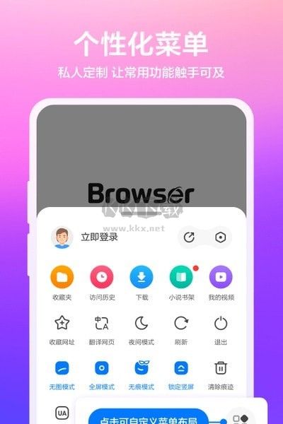 1、另外用戶可以根據個人喜好自定義主頁、壁紙和工具欄,讓瀏覽器更符合個人的瀏覽習慣。