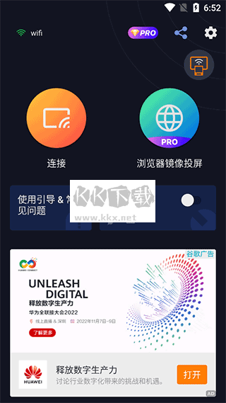 設備接入到同一個WiFi網(wǎng)絡環(huán)境下,輸入投屏碼或掃碼后即可成功連接。