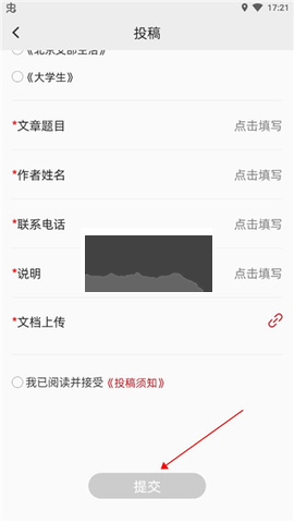 3、進(jìn)入后將您的文章基礎(chǔ)信息填好,點(diǎn)擊下方的提交即可。