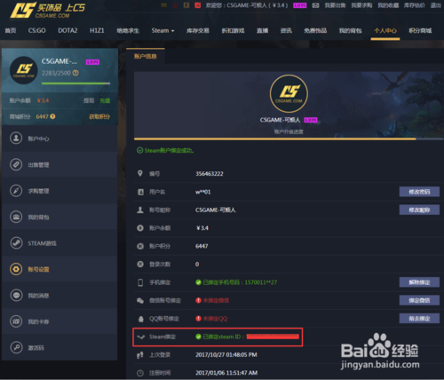 跳轉(zhuǎn)到個(gè)人中心-賬號設(shè)置進(jìn)行綁定steam。