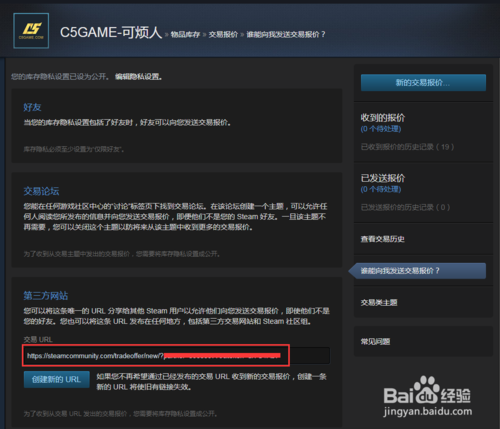 跳轉(zhuǎn)到steam,往下拉可以看到您的交易鏈接,復(fù)制。