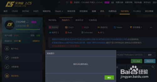 返回C5game我的背包,飾品存入界面,把復(fù)制好的交易鏈接粘貼到紅色框框處,點(diǎn)擊保存按鈕。提示保存成功即可。