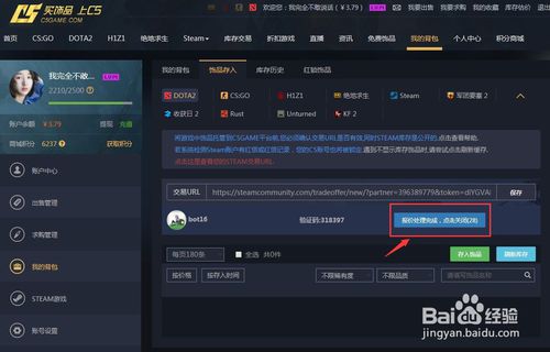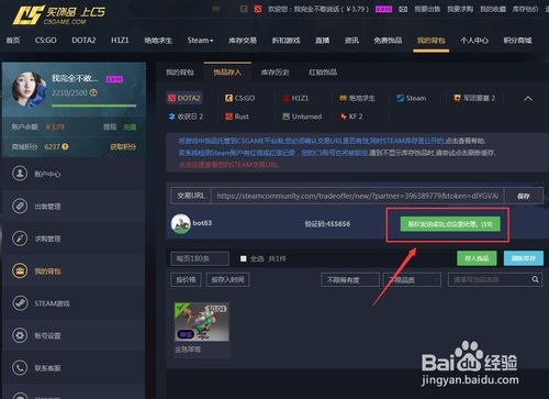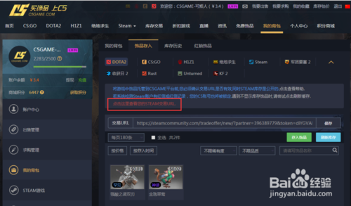 綁定steam成功后,去綁定下steam的交易報(bào)價(jià)鏈接(即URL)這個(gè)是用來識別您的steam和C5進(jìn)行交易用的哦。在我的背包-飾品存入 點(diǎn)擊紅色字。