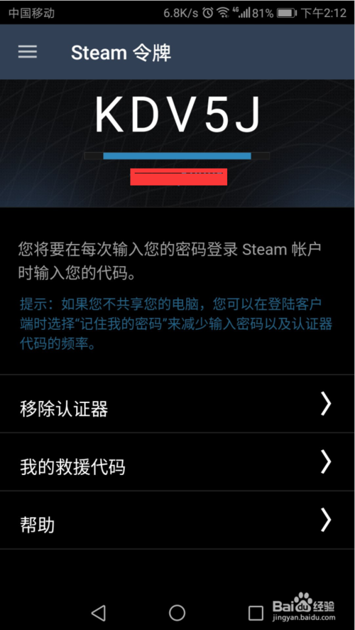 打開steam手機(jī)令牌,啟用驗(yàn)證器,這個(gè)是手機(jī)動態(tài)令牌,每次登陸steam都需要這個(gè)的動態(tài)碼。