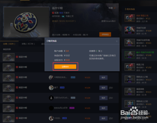 點(diǎn)擊飾品,找到自己滿意的價(jià)位,點(diǎn)擊購買按鈕。如果有優(yōu)惠券,可以添加,然后點(diǎn)擊立即支付按鈕。
