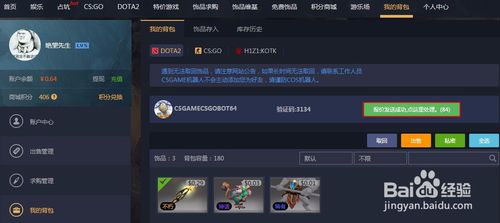 您購買成功物品已經(jīng)存入C5背包,在【我的背包】可以看到。如果您想將飾品取回steam庫存(游戲庫存),可選擇飾品出現(xiàn)綠色勾后,點(diǎn)擊灰色取回按鈕。