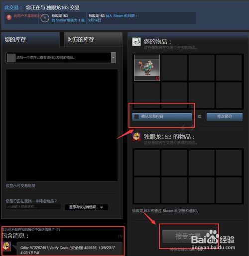 跳轉(zhuǎn)steam交易界面,勾選確認(rèn)交易內(nèi)容。左下方有驗(yàn)證碼的代表和您進(jìn)行交易的是C5機(jī)器人。