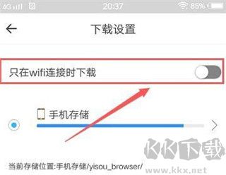4、在“下載設(shè)置”窗口中,找到“只在WIFI連接時下載”欄目下開啟即可