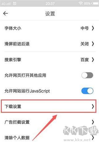 3、在“設(shè)置”窗口中,找到“下載設(shè)置”欄目。