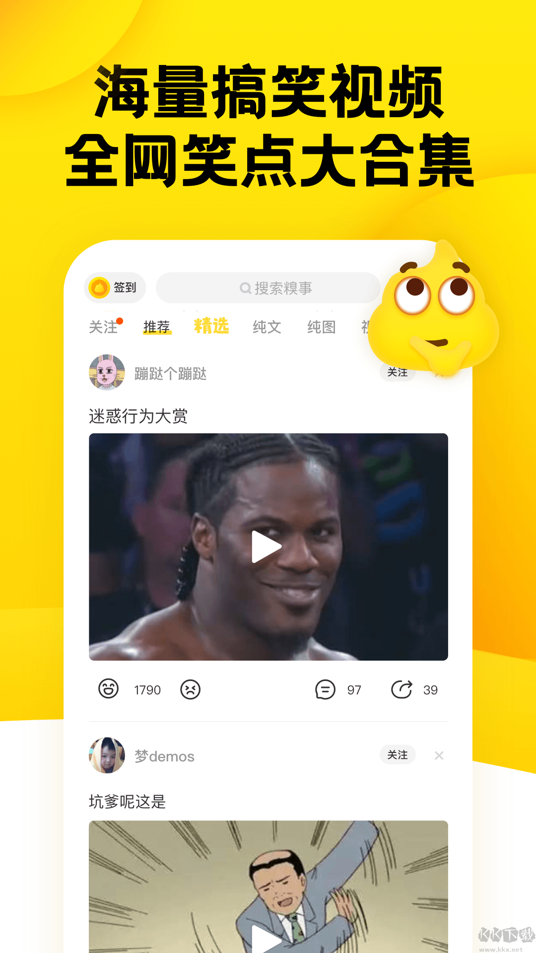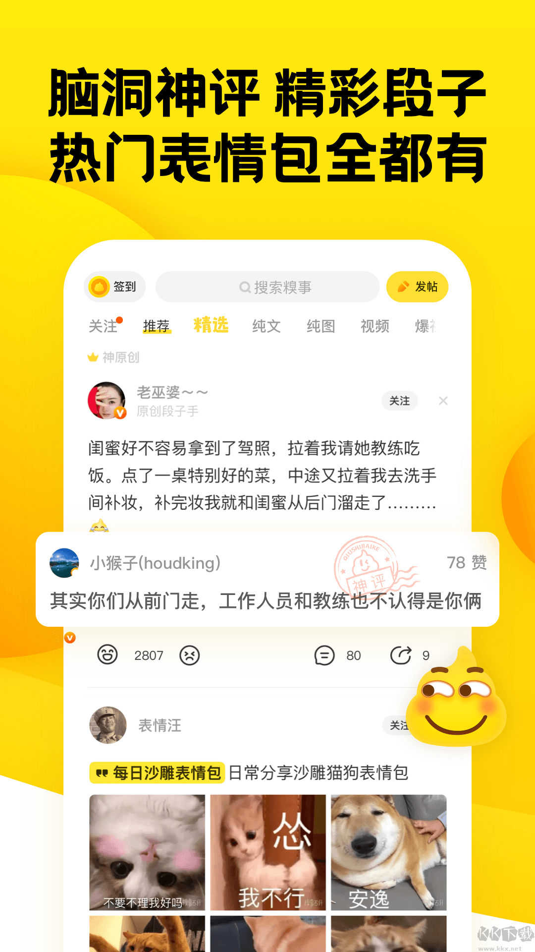 原創(chuàng)段子內(nèi)涵圖、搞笑 GIF 短視頻、聊天套路表情包… 每天海量?jī)?nèi)容更新,內(nèi)涵段子短視頻,微博超右神評(píng)論,全網(wǎng)的笑點(diǎn)都在這兒