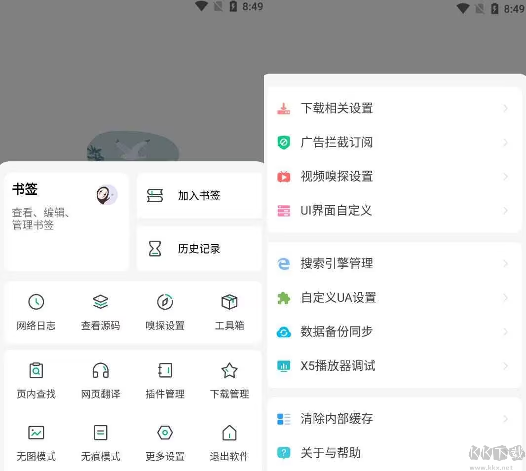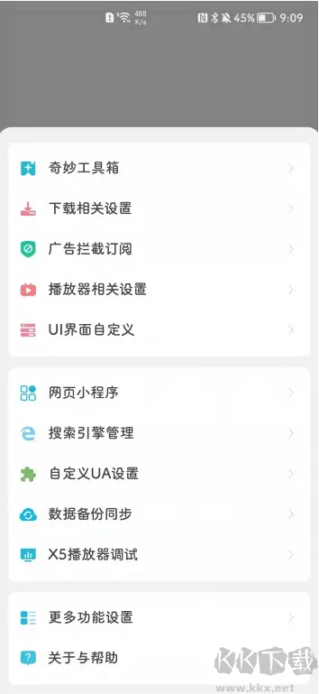 3、另外軟件還可以自定義設(shè)置很多功能,可以更換皮膚,還可以設(shè)置攔截廣告,非常人性化。