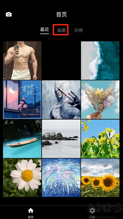 3、接著進(jìn)入軟件首頁(yè)可以通過(guò)最近或者畫(huà)廊處找尋自己想要生成肌肉的圖片,我們?cè)诋?huà)廊中找尋;