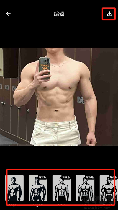 5、接著在這可以看到下方都是可以使用的肌肉模板素材,選擇自己喜歡的肌肉模板后直接在右上角保存下載即可。