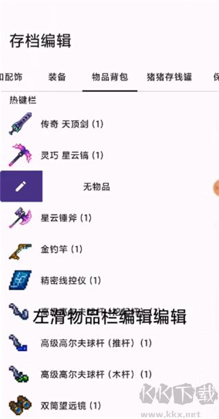 泰拉瑞亞編輯器是專為泰拉瑞亞手機(jī)版游戲所打造的一款存檔編輯器工具,通過它用戶們既可以快速的編輯泰拉瑞亞的存檔,也可以快速的將存檔進(jìn)行導(dǎo)入、進(jìn)行備份,以此讓廣大的泰拉瑞亞玩家們可以更好的進(jìn)行游戲。