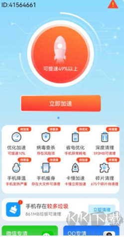 3. 在主界面點(diǎn)擊“優(yōu)化加速”按鈕,釋放手機(jī)內(nèi)存,提升運(yùn)行速度。