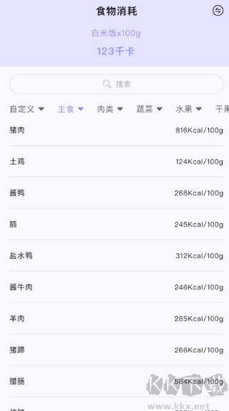 2、熱量數(shù)據(jù)庫:隨時(shí)查詢各類食物熱量信息,輕松完成健康管理記錄;