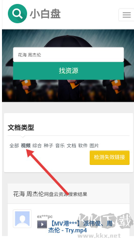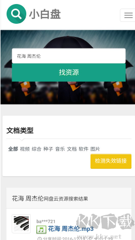 1、啟動小白盤應(yīng)用,在主頁搜索框輸入關(guān)鍵詞,查找目標(biāo)資源。