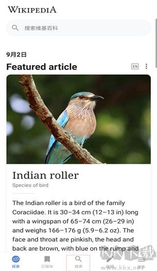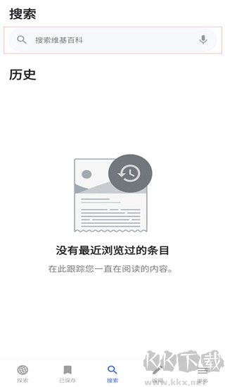 1、下載維基百科手機版,安裝后打開,點擊搜索;