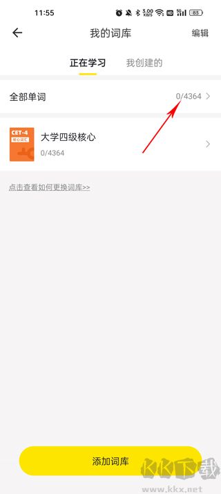 1、進(jìn)入我的詞庫(kù)頁(yè)面,點(diǎn)擊全部單詞;