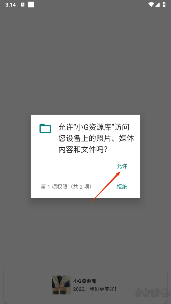 1、在手機(jī)上啟動(dòng)小G資源庫應(yīng)用,確保授予應(yīng)用所需的訪問權(quán)限。