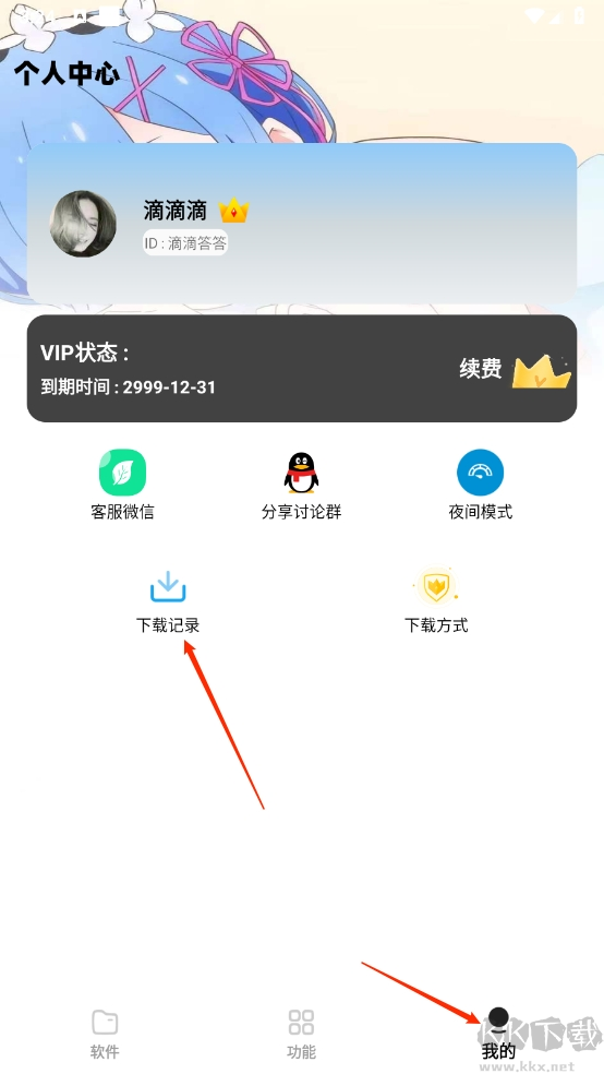 6、回到“我的”頁面,點(diǎn)擊“下載記錄”以查看和管理已下載項(xiàng)目。