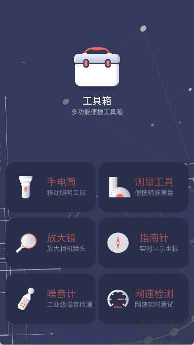 拇指工具箱應(yīng)用是一款功能強(qiáng)大的移動(dòng)端工具合集,集成了多種測(cè)量功能,涵蓋指南針、手電筒、水平儀、角度尺、直尺、分貝儀、振動(dòng)檢測(cè)儀等??蓪?shí)時(shí)監(jiān)測(cè)網(wǎng)速占用情況,識(shí)別后臺(tái)程序消耗。戶(hù)外活動(dòng)時(shí)提供精準(zhǔn)方向指引,緊急情況下一鍵開(kāi)啟照明功能。界面設(shè)計(jì)簡(jiǎn)潔清爽,全程無(wú)廣告侵?jǐn)_,收錄日常高頻使用工具,包含測(cè)量?jī)x器、放大鏡、方向定位、光線(xiàn)照明、噪音測(cè)試、網(wǎng)絡(luò)測(cè)速等全套實(shí)用功能,成為生活場(chǎng)景中的實(shí)用伙伴。