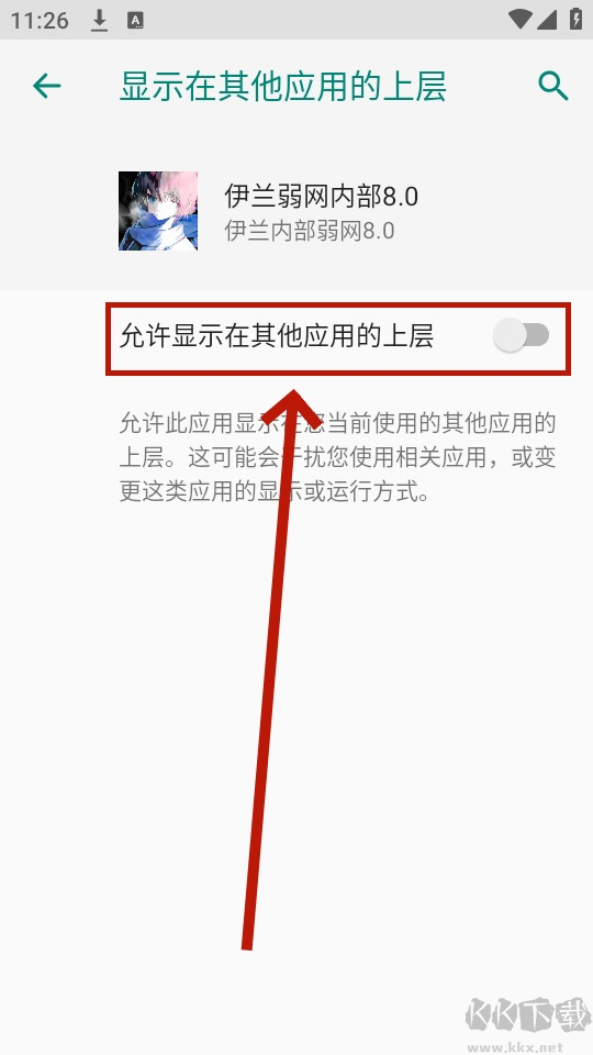 1、啟動(dòng)伊蘭弱網(wǎng)內(nèi)部應(yīng)用后,點(diǎn)按開啟懸浮窗授權(quán)。