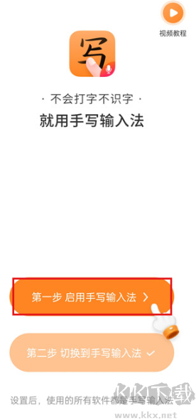 1、啟動手寫輸入法,點按開啟手寫輸入功能。