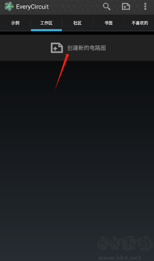 1、啟動電路模擬器,在操作區(qū)界面點選創(chuàng)建新電路圖。