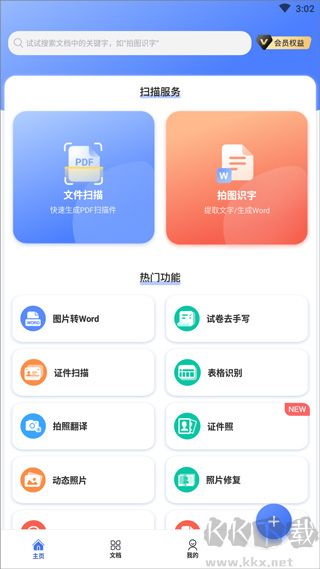 1、打開掃描大師手機(jī)版,軟件主頁如圖,這里有著很多實(shí)用功能;
