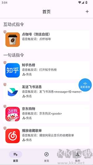 5、輕觸"發(fā)現"選項,可查看眾多示例語音指令詞。