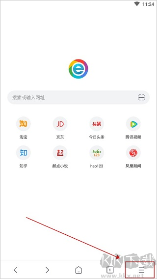 1、啟動小智瀏覽器應用,并輕觸界面上的“三”形符號按鍵。