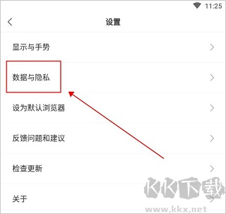 3、進入“設置”窗口后,使用者應點選“數(shù)據(jù)與隱私”部分。