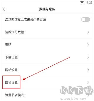 4、在“數(shù)據(jù)與隱私”界面中接著選取“隱私設置”區(qū)塊。