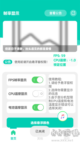 幀率監(jiān)測器是一款用于安卓設(shè)備的實(shí)時(shí)畫面刷新率監(jiān)控工具,協(xié)助用戶隨時(shí)掌握設(shè)備性能狀態(tài)。特別適合游戲娛樂或視頻觀賞場景,清晰呈現(xiàn)特定時(shí)段的設(shè)備資源分配狀況。該應(yīng)用可直觀展示電池溫度、處理器狀態(tài)、硬件參數(shù)等信息,全面監(jiān)控設(shè)備運(yùn)行情況。使用懸浮窗功能時(shí),若界面色彩辨識度不足,可自由調(diào)整懸浮窗口色調(diào),操作極為便捷!