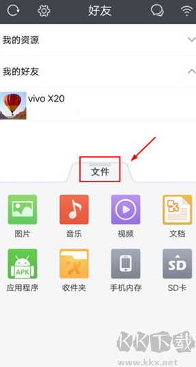 1、啟動(dòng)應(yīng)用,點(diǎn)擊底部"文件"入口,選取待傳文件
