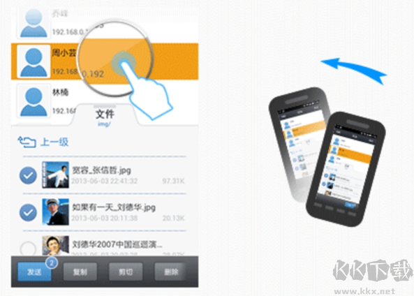 3、也可以長(zhǎng)按選擇聯(lián)系人,勾選文件后晃動(dòng)設(shè)備發(fā)送