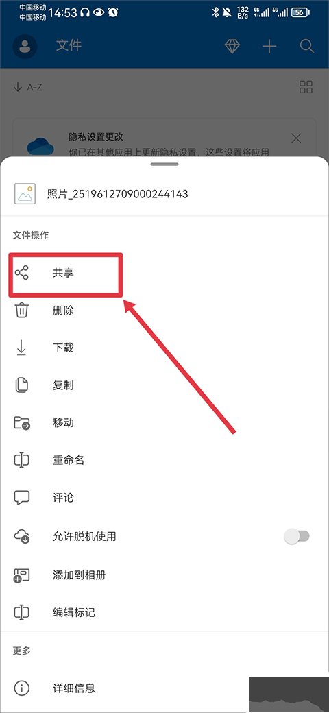 3、以分享照片為例,使用拍攝功能拍照并上傳后,點(diǎn)擊照片右側(cè)更多選項(xiàng)