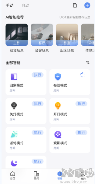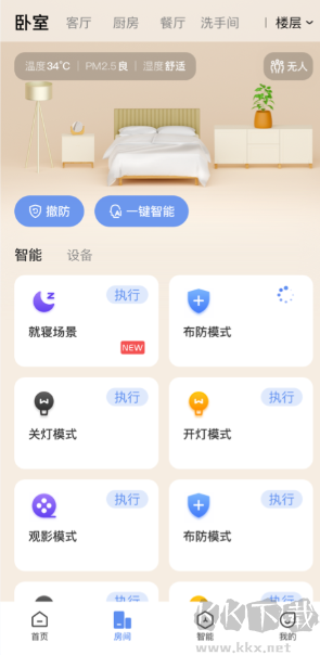 2、切換至不同房間視圖,可一鍵啟動(dòng)預(yù)設(shè)的智能場景。