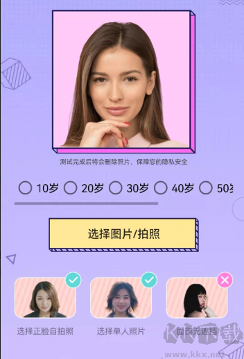 2、具備年齡變化模擬功能,可預(yù)覽不同年齡的自己,直觀感受容顏隨時間的變化;