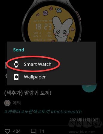 4、挑選“智能腕表”,也就是發(fā)送到你的移動終端,別忘了將你的表面設定為timeflik的表面。