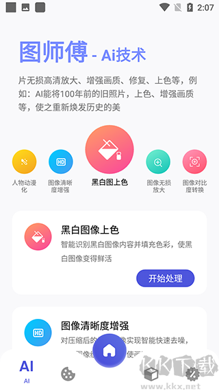 2、點(diǎn)擊AI選項(xiàng),可以給黑白圖片上色、老照片圖像清晰度增強(qiáng)等。