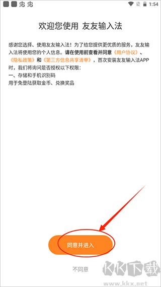 1、下載并打開友友輸入法語音輸入app,在引導(dǎo)界面點(diǎn)擊第一步。