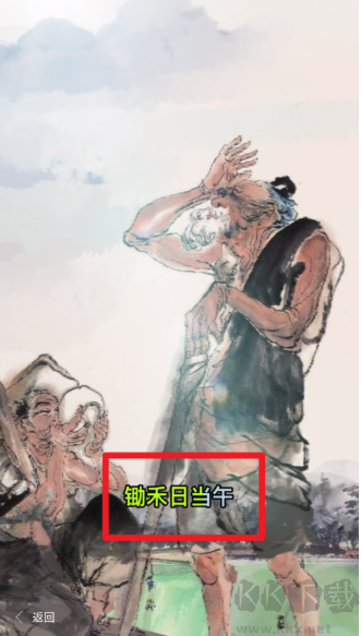 5、進入具體詩歌界面,例如《憫農(nóng)》,方便跟讀和記憶。