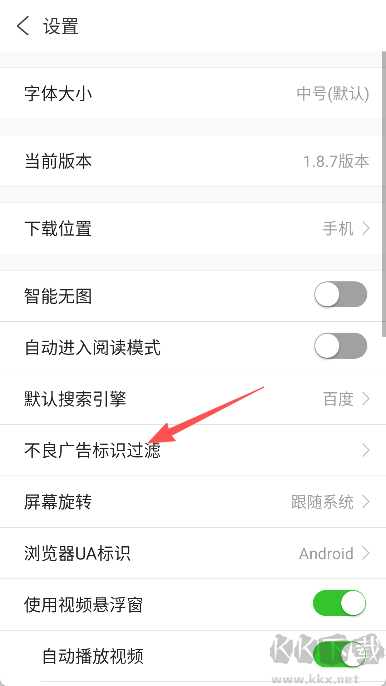 4、開啟“不良廣告標(biāo)識(shí)過(guò)濾”功能即可。
