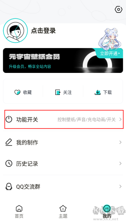 1、打開app,點(diǎn)擊我的,點(diǎn)擊功能開關(guān)。