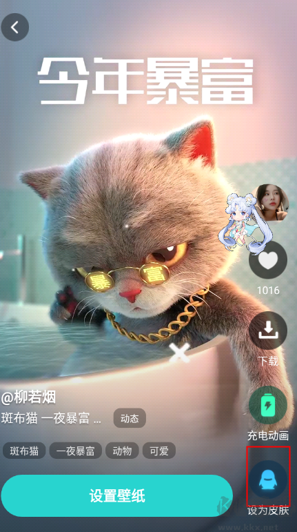 3、選擇一款動(dòng)態(tài)壁紙,點(diǎn)擊設(shè)為皮膚即可。