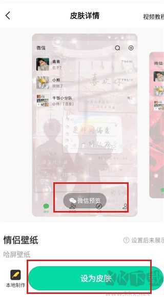 2、選擇一張壁紙點擊進去,選擇設為皮膚,也可以微信預覽