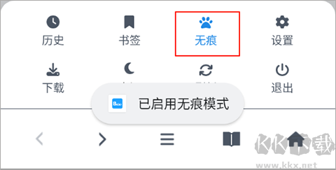 3、選擇并點擊“無痕瀏覽”這個特定選項,點擊完成后,相關(guān)功能即刻生效。