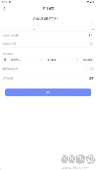 2、自定義學習的內(nèi)容范圍,并設定你的學習順序、每日記憶詞匯數(shù)量等參數(shù)。